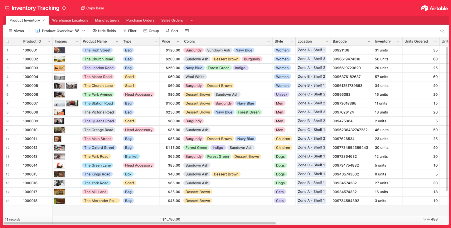 Airtable solves this by giving each team their own view of shared data. The purchasing team doesn't need a separate spreadsheet. They get a filtered, sorted view of the same base the ops team uses. When a PO is received and inventory updates, the ops team sees it immediately in their fulfillment view. The CS team sees updated stock levels without asking anyone.